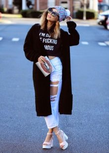 Massive tractor-soled sandals look great with light, airy dresses. It turns out a stylish game in contrasts, which gives a highlight to your image. You can also wear them with any denim clothing. It can be ripped jeans, shorts, a skirt or a sundress. This is an ideal everyday combination that will help create a stylish rebel look.