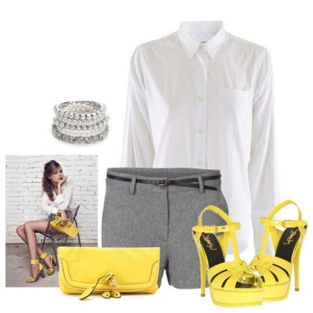Thick heeled sandals will fit perfectly in a business image. They can be combined with strict shorts and a graceful blouse. Give preference to sandals monophonic, yellow, blue, gray, black.