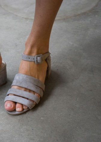 No less relevant in the new season will be high sandals with miniature heels. Such models fit full legs and can hide the flaws of the wide foot.