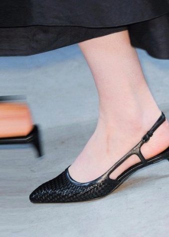 Despite the variety of decor, stylists still advise giving preference to the retro style. A sharp nose, a thin strap and a small “shot glass” heel. Such minimalism will successfully combine with both jeans and dresses.