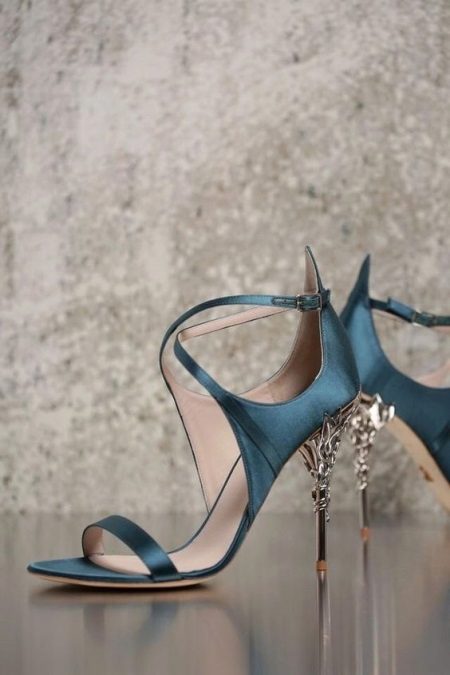 Sandals of blue and white color are popular. This color scheme is traditionally associated with sea holidays, so it will cheer you up in the conditions of urban everyday life.