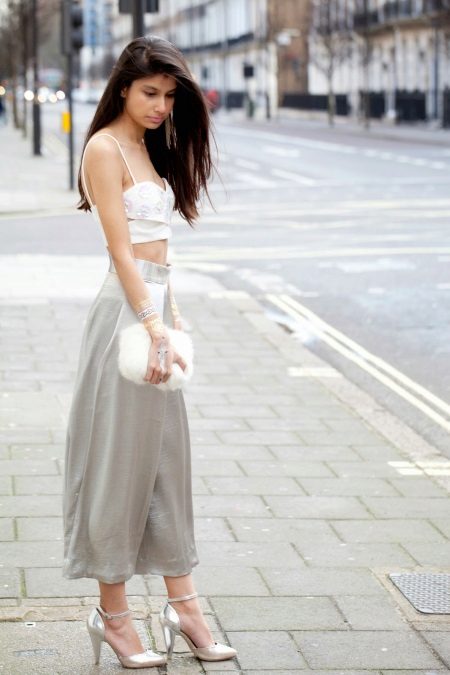 Then you can quite afford to come to work in a pencil skirt with silver sequins. To keep the look business-like and stylish, wear it with a classic shirt and beige sandals. Complement your look with a clutch and sunglasses. If you still have a strict dress code at work, just replace this skirt with a classic pencil skirt.