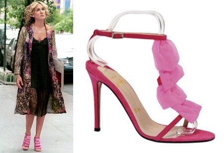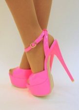 Pink sandals with stiletto heels or high resistant heels will perfectly complement a long dress or tight pants.