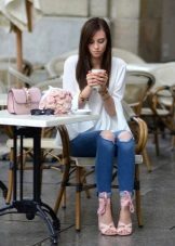 To emphasize the femininity of such sandals, add similar transparent shades to the ensemble: ivory, inconspicuous berry colors, pale yellow, darker pink tones.