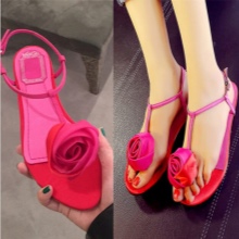 Despite the attractiveness of this floral color, some ladies treat it with caution because of the fear of causing puppet associations among others (a la Barbie). But here it all depends on a sense of style and combination with clothes. Moreover, pink sandals, unlike shoes, are more feminine and not so glamorous shoes.