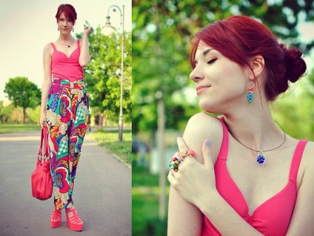A successful duet will turn out with a variety of floral prints. In addition, a spectacular look can be created by combining pink sandals with a leopard outfit, the main thing here is not to go too far with accessories.