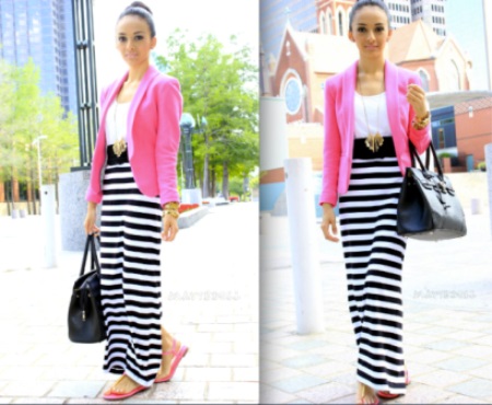 For example, a blue summer dress with slightly muffled bright pink sandals will look spectacular.
