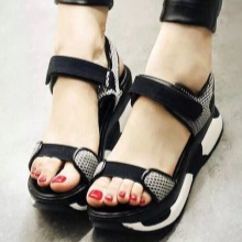 Sport sandals or sandals are made of soft, wear-resistant material. Their sole is thick, corrugated, has sides on the sides so that dust and dirt do not get. As a rule, it is orthopedic.