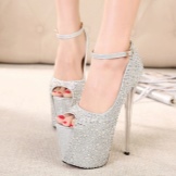 The most common color for wedding shoes is white. The combination of a white dress and the same sandals is an invariable classic. It is worth remembering that the shoes should match the shade of your white color. The combination of blinding white with ivory is completely unacceptable. But you can depart from the tradition by acquiring silver sandals.