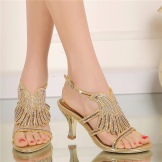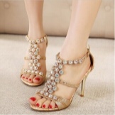 In this case, the heel can be high, medium and very small. Girls who feel great on a hairpin are advised to choose it. High heel visually lengthens and transforms the legs. It itself is a wonderful decoration, so do not overload the sandals with an abundance of rhinestones and beads. Heels are perfect for long, lush outfits.