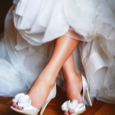 A bride of small stature is suitable for light, elegant shoes, taller girls can afford more massive sandals. You also need to think about the ratio of the length of the heel to the height of your groom. The optimal length is from 10 to 12 centimeters. It is best to make a purchase in the late afternoon, the leg will slightly increase in size and it will be easier to assess the quality and comfort of the shoe.