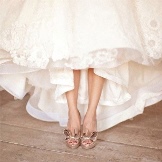 If your dress has a shade of champagne, then golden shoes will be just right. Today's brides strive for extravagance, choosing sandals of various colors.At the same time, it is better to supplement the bow with a small bright accessory, such as a handbag or belt. The bride’s bouquet picked up in tone of shoes looks interesting.