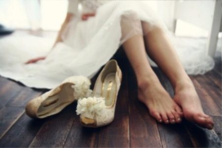 The solution will be to purchase a pair of delicate wedding ballet flats that will help you when you are completely tired. But still it is advisable to start wearing sandals a couple of weeks before the wedding. Wear them at home, in a comfortable environment and walk for a while, so the leg will quickly get used to certain inconveniences.