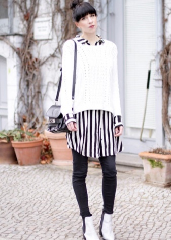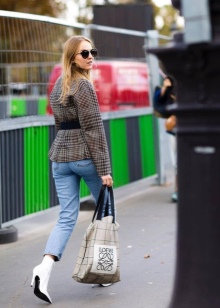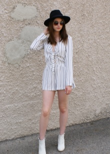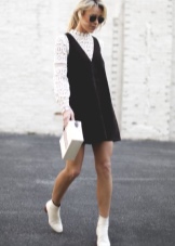 A light dress with a straight or fitted cut will look very feminine with light ankle boots. A light and airy image will help to shape a white dress with a blue or blue print.