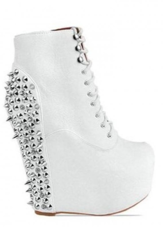 Convenient models on the platform visually stretch the figure and make the lady taller and slimmer. In elegant products of beautiful white color it will be convenient to walk on slippery surfaces in the winter season, as the platform creates additional support. Such a detail can be additionally decorated with spikes, rhinestones and stones.