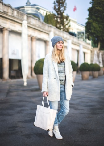 Women's coats of various lengths and warm down jackets will harmonize with ankle boots decorated with light fur. Under the outer clothing you can wear a skirt or skinny pants in black.