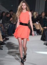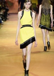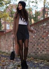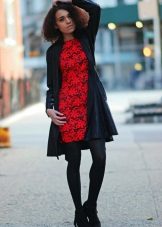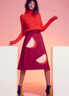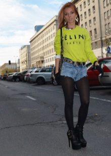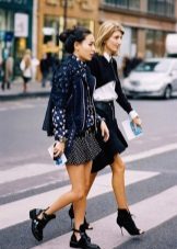 Add a model with a high heel to a short loose dress or skirt, clothes of red or white color with tights matching the color of ankle boots look especially good. Also, mini shorts or tight trousers will be appropriate.