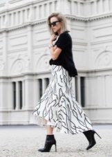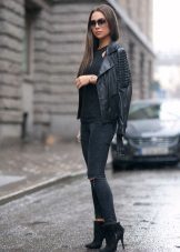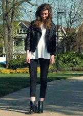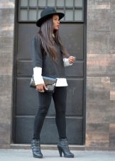 Black ankle boots can not be attributed to universal shoes. They are not combined with pants of classical cut, breeches, as well as certain models of skirts. Rough looks with these shoes and a long dress.