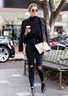 However, to create a stylish look, it is important to observe the following condition: black ankle boots must be balanced in the outfit with some other detail of the same color. However, it is very easy to select accessories for this type of shoe.
