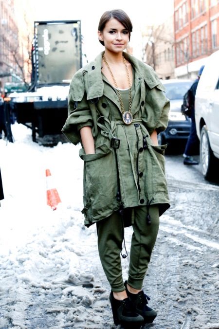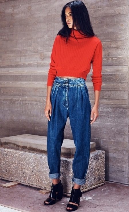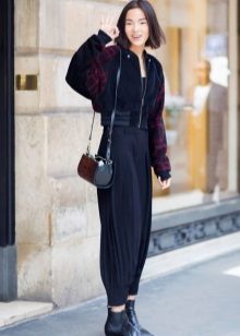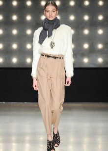 You should know that trousers are not tucked into a narrow top, this is permissible if it is loose. As for the color of the trousers, bright options will look spectacular with black ankle boots or with a print (peas, leopard, geometric, camouflage). The main condition in this case is not to overload the top.