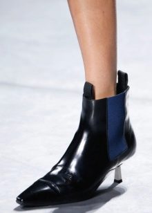 Designers experiment with heels (for example, curved shapes). Also, black ankle boots can have a two-color heel, which visually looks thinner.