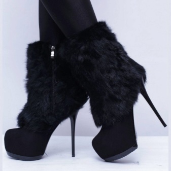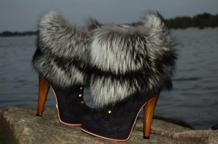 In winter, many ladies prefer ankle boots with fur trim. But under such models, one should carefully select outer clothing (a fur coat or coat trimmed with fur).