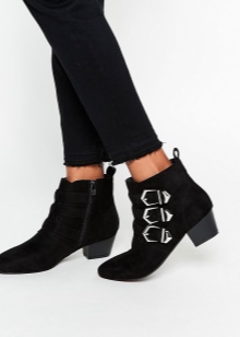 Ankle boots can be in high or low heels of various shapes: from thin, high heels to low, wide "bricks." There are styles on the platform or wedge heels. Possible toe shape: sharp, round or square. There are more original options with an open toe .