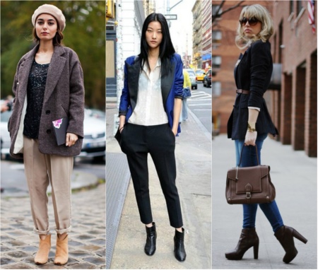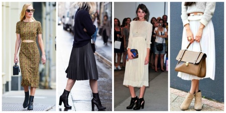 More stable low and medium heel ankle boots are perfect for everyday looks. They can be worn for work and for walks. Graceful models with high heels can be worn at a party, to go to the theater or corporate party. In no case do not wear short ankle boots only with an evening dress.