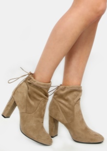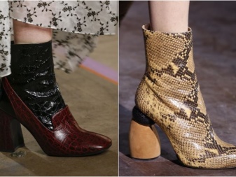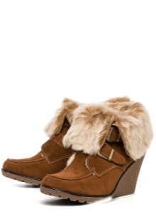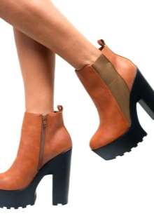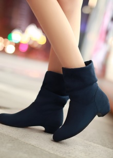 Suede options adhere to more strict forms and small height. Hot novelties were pairs in high fat heels, made in mustard tones. The boots themselves are characterized by a minimalist design and have curly cuts in the front or on the sides. Fans of spectacular shoes prefer boots without a fastener, which have elastic inserts for easy donning.