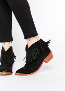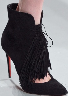 The fashionable decor of the season is creative and imaginative. Ankle boots are decorated with thin straps, decorative stitches, metal spikes, buckles, zippers, laces with leather flounces. Aristocratic couples with fur trim became winter trends. Graceful options for autumn are generously decorated with fringe, located in several rows.