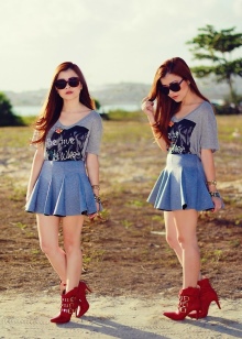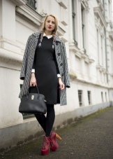- charming dresses with a fluffy skirt and suede ankle boots with wedges or high heels with a platform;