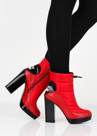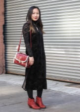 Red blends perfectly with classic black and is not so striking. Outfits in such a color ensemble are perfect for everyday wear. Scarlet ankle boots will harmoniously look with black leggings and skirts. In the cool season, such shoes are a wonderful complement to outfits with dark coats and jackets. Red ankle boots with an elegant black dress in an urban or evening style look no less impressive and feminine.
