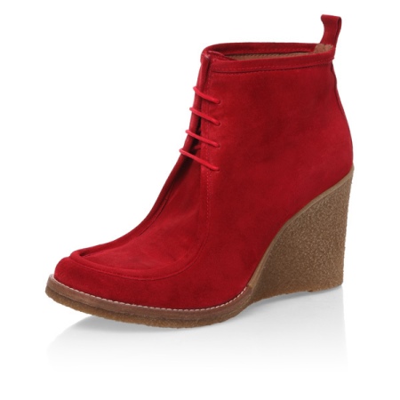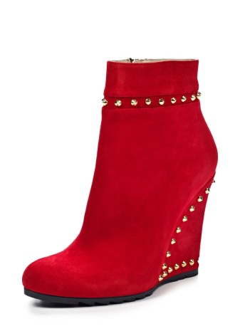 Stylish ankle boots in bright colors on a comfortable and reliable wedge heels look very original and youthful. Such shoes perfectly complement almost any outfit.Suede booties with metallic spikes on a wedge heel are especially attractive. Such models can be equipped with lacing or fur in the area of the shaft (for the winter season).