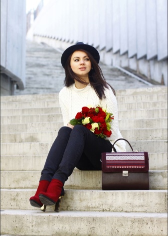 Saturated red should not be too much in the dress. To such bright shoes it is better to choose clothes in soothing colors. However, ankle boots and an outfit in the same color scheme can be combined, provided that you add clothing items in a neutral color to this set. Sets diluted with elements of contrasting white, cream and gray shades will look harmonious. For example, you can wear scarlet ankle boots and a red dress and decorate the image with a delicate strap at the waist, a light bolero and a pastel clutch.