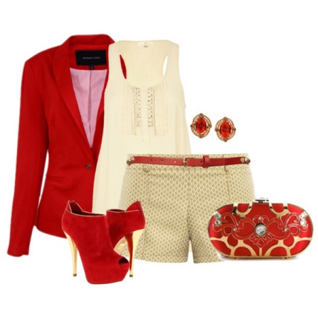 Red shoes look very impressive in an ensemble with white clothes. A combination of bright ankle boots with beige shorts and tops complemented by red jackets will look stylish and harmonious. Another successful look is easily achieved with a light, light dress, rich shoes and a red strap at the waistline.