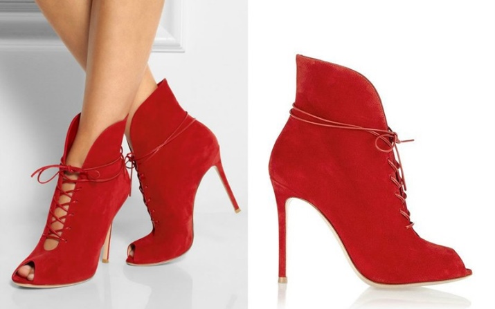 If there is a warm, warm day in the yard, then you can safely put on original red ankle boots with an open toe. Such shoes are suitable not only for late spring or warm autumn, but also for cool days of the summer season. With such models you do not need to wear socks or tracks. Ankle boots are worn only on the bare foot.