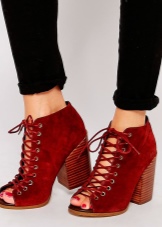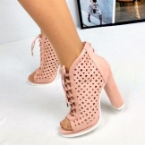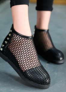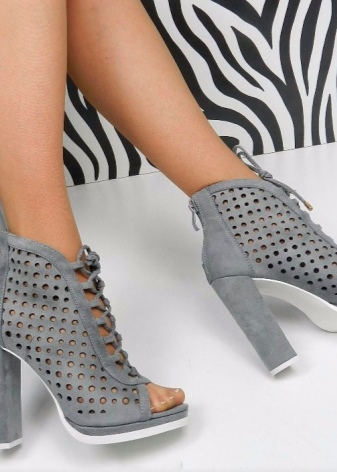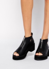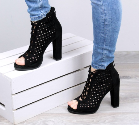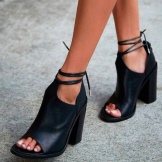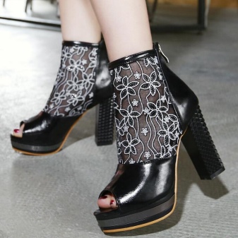 Black options with an open toe will fit perfectly into any summer look. The finest lace, shaded by strips of leather and decorative lacing, is the height of design skill. Such ankle boots will become the accent of an evening outfit.