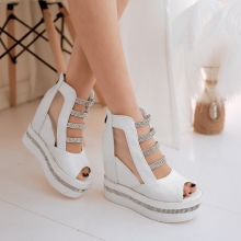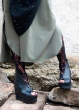 Options on a platform sole are the most steady and convenient. The platform is made of wood, cork, polymers and can be of different heights. For everyday bows, low models are usually chosen, and for ceremonial exits, the beautiful half of humanity tries to choose a product of maximum height. Due to the heel, such products are very light and do not burden the legs. Therefore, they are very convenient and comfortable.
