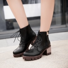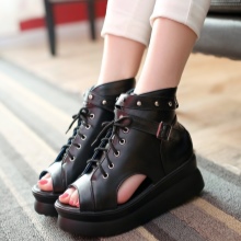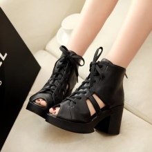 Shoes with a tractor sole and a thin stiletto heel can be decorated with a fancy diagonal lacing as a decor.
