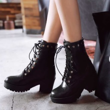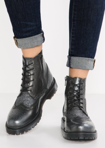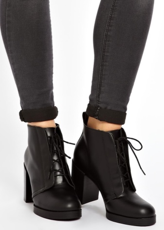 Lace-up ankle boots combine classics and sporty style. Thanks to the vertical lacing, the pairs are perfectly adjustable in terms of leg volume. They decorate both casual casual and romantic bow. Options with metal fittings, rivets and spikes will appeal to fans of the rock style. Black color goes well with silver metal.