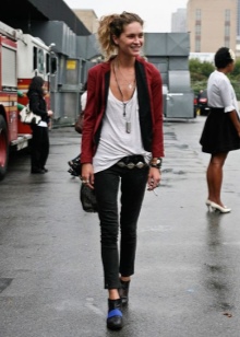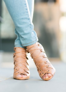 Options with a beveled or openwork heel look unusual. In sunny weather, the best choice will be pairs of nubuck, jeans and textiles. On rainy days, the ensemble is complemented perfectly with leather models.