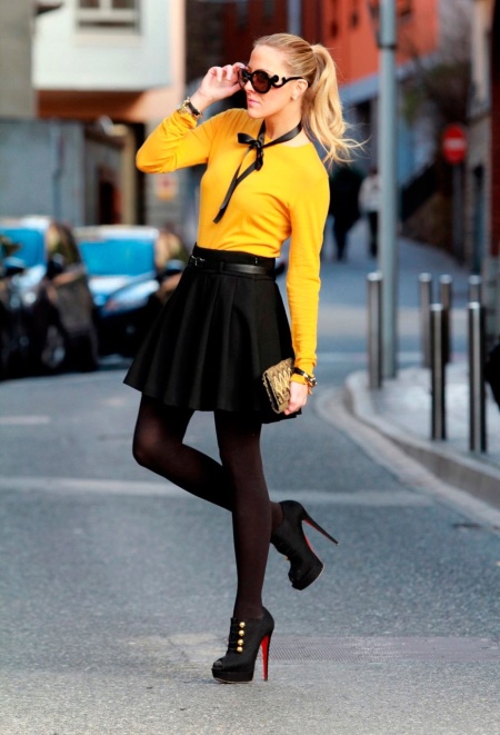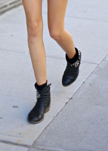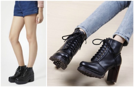 Thick heeled ankle boots are best combined with shorts, leggings, skirts and skinny jeans.