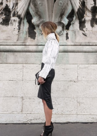 High ankle boots are appropriate in the office dress code and are combined with strict classics. Airy patterns of printed leather will fit perfectly into the urban style with a dress of laconic shapes. An open toe will give your fingers extra freedom, and the original printed pattern will dilute the strict lines of the dress.
