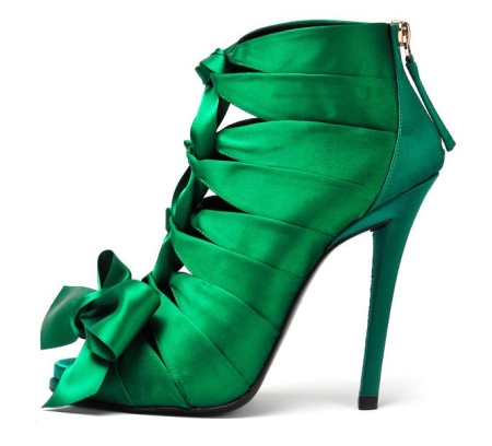 Fans of vivid images, stylists offer emerald textile ankle boots with a thin high hairpin. The minimalism of the design will give the image of a woman elegance and grace.