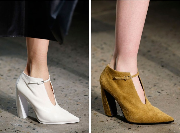 The most popular couples in heels. They are as close as possible to graceful shoes, therefore they are able to replace even the most elegant tall boats. Whatever form of heel is chosen, it will make the figure taller and more stable.