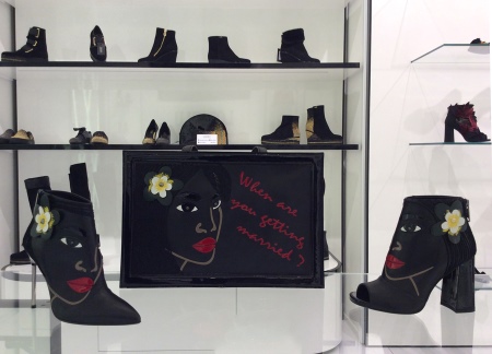 Models can also vary in shape and size of the heel (low, thick, high) or be on a flat sole or wedge.