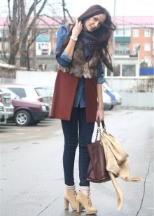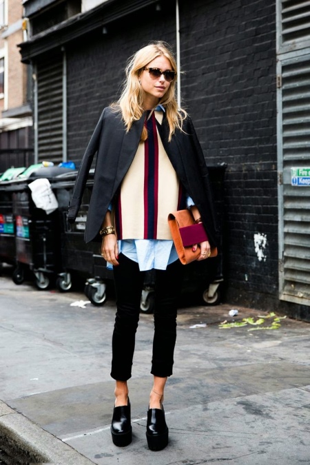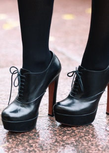 Pair with a thin heel can be combined with jeans of a free cut, twisting them so that a strip of leather is visible between shoes and trousers. Classical with arrows or flared models of trousers with such pairs are tasteless.