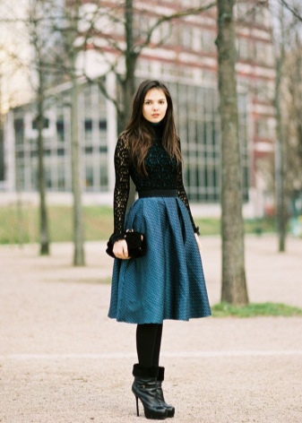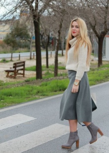 The leading trend that stylists recommend is the combination of thick heeled ankle boots with skirts of different styles.