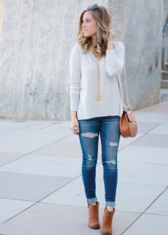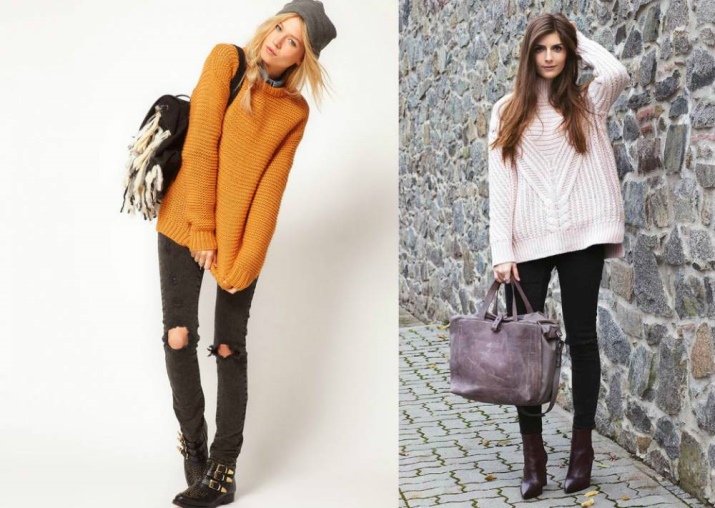 To walk around the city, you can combine ankle boots with a voluminous knitted pullover and boyfriend jeans.