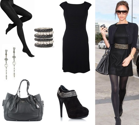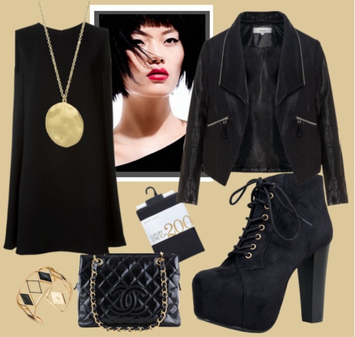 Hits on the hidden platform look with a small black dress, a stylish jacket and golden jewelry.